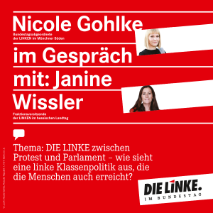 In Bayern hingegen hat DIE LINKE den Einzug in den Landtag leider verpasst, aber erstmals tritt DIE LINKE in Bayern für alle Kommunalparlamente an. Hierfür brauchen wir Strategien und Erfahrungsberichte, wie wir es als LINKE schaffen, die Partei in der Gesellschaft zu verankern. Gleichzeitig wollen wir aber auch die Partei des Widerstands und Protestes bleiben. Jannine Wissler hat dieses Spannungsfeld sehr nah erlebt: der frühe Einzug ins Parlament sowie die Verankerung in sozialen Bewegungen und Auseinandersetzungen vor Ort, z.B. gegen Abschiebungen, den Flughafen-Ausbau oder Arbeitskämpfen bei Maredo, Amazon und anderswo, waren von Anfang an Teil des Erfolgs der hessischen LINKEN. Mit ihrer Fraktion hatte sie die Option auf eine Regierungsbeteiligung gemeinsam mit der SPD und Bündnis 90/Die Grünen. Uns stellt sich also die Frage: Wohin wollen wir DIE LINKE entwickeln?